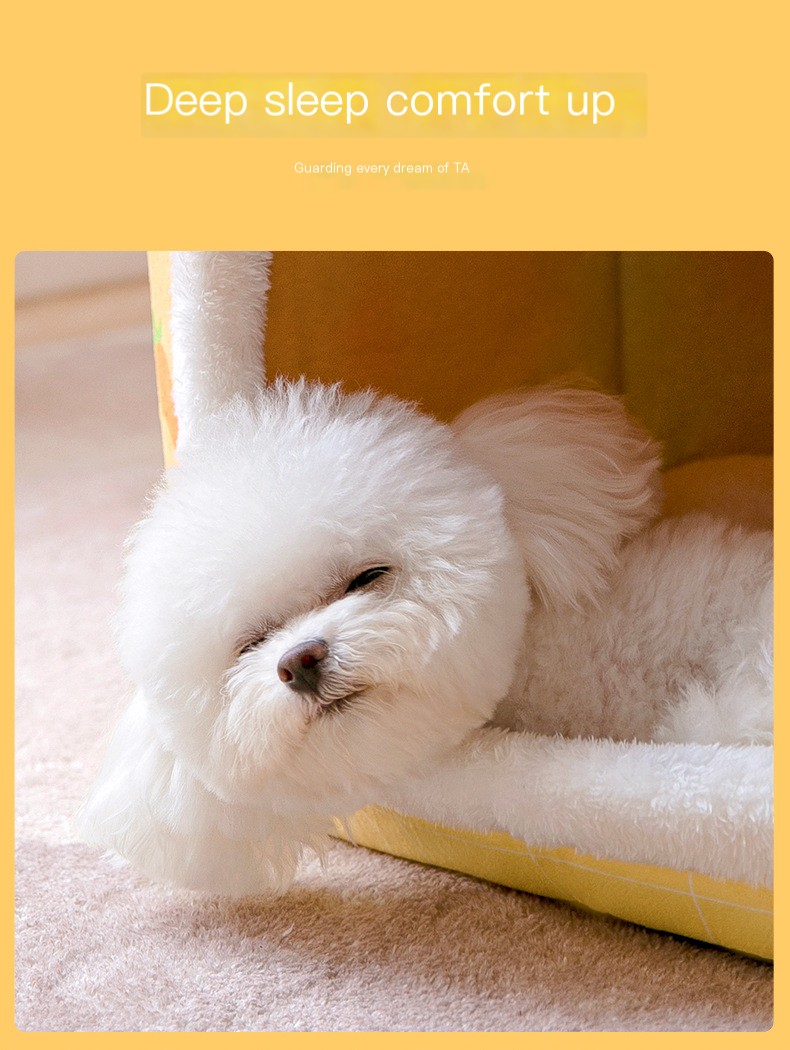 Choose from a variety of delightful colors and designs, including the adorable Radish Rabbit, charming Brown Tile House, and the sweet Cream Bread Nest. Each bed is available in multiple sizes to perfectly fit pets weighing up to 28kg, making it suitable for all breeds.
