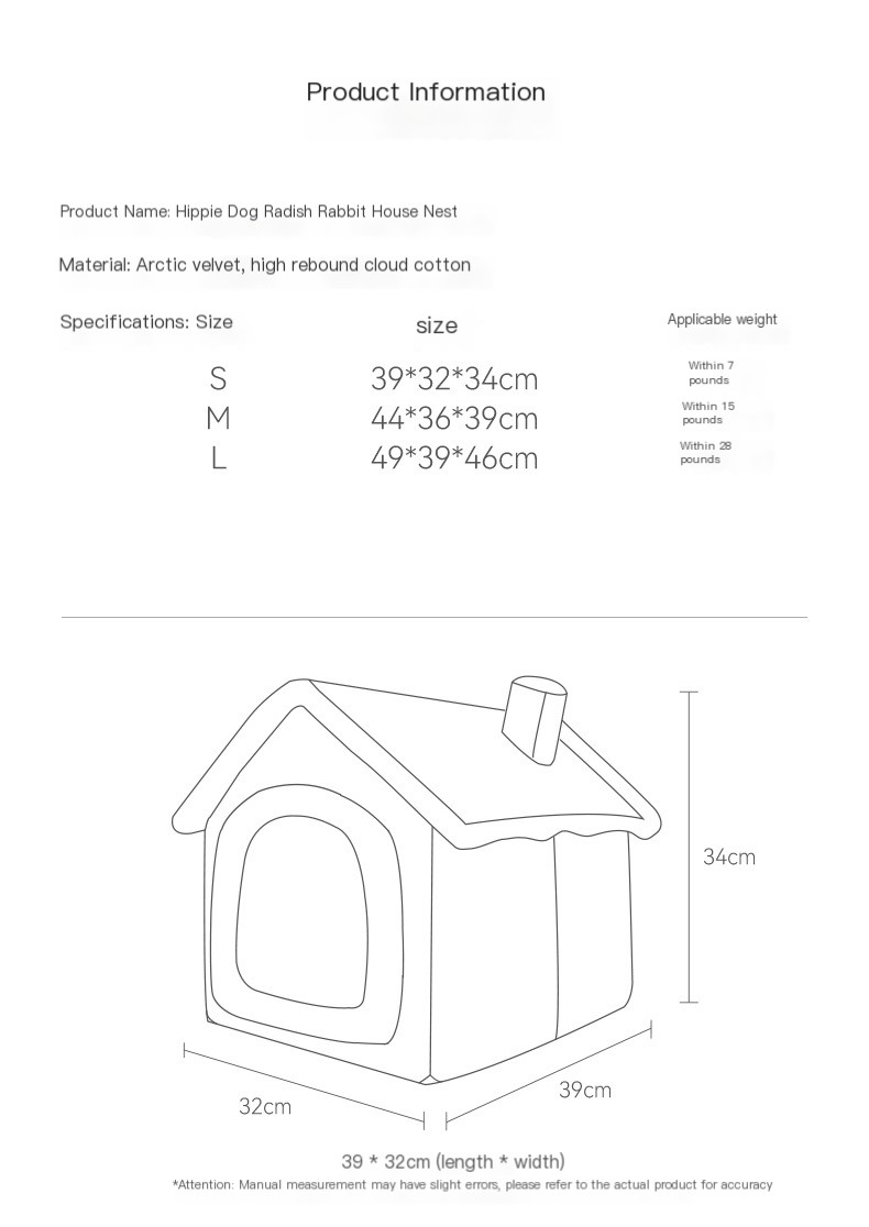 Give your furry friend the ultimate comfort they deserve with our cozy and stylish pet bed! Designed specifically for small dogs and cats, this four-season pet house offers a warm, enclosed space that keeps them secure and comfortable all year round.
